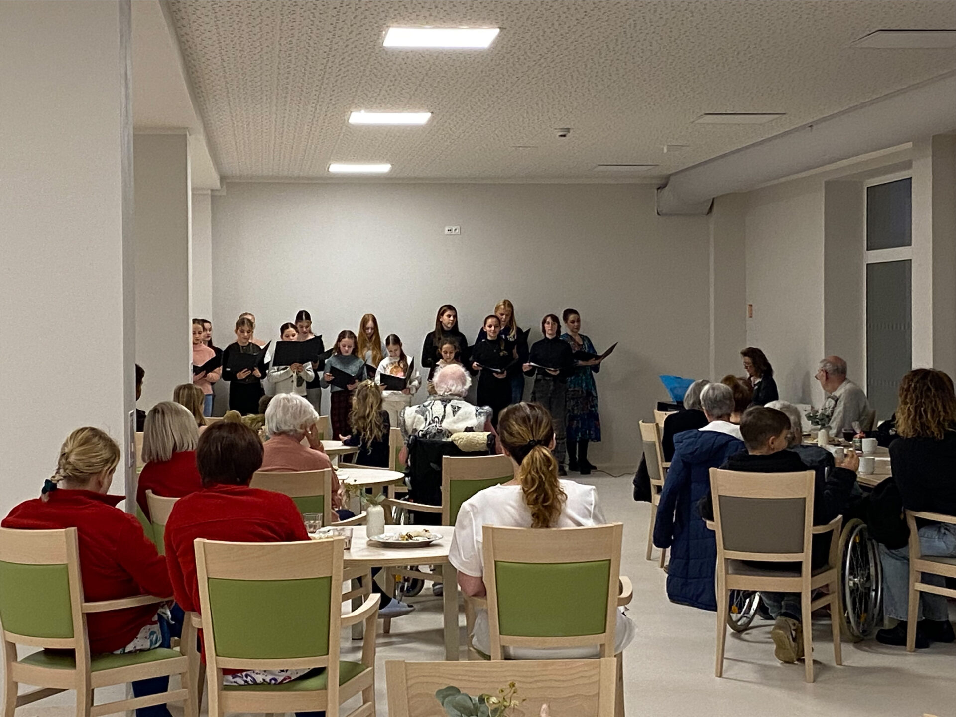 Ve středu 26. 11. 2025 navštívily studentky sólového zpěvu společně se svými vyučujícími R. Nachtigallovou a L. Pavlovič a žákyně tanečního oboru s vyučující L. Šťastnou domov pro seniory se specializovanou péčí Clementas ve Hředlích. Klienty potěšily vánočními písněmi a úryvkem z chystaného tanečního představení.