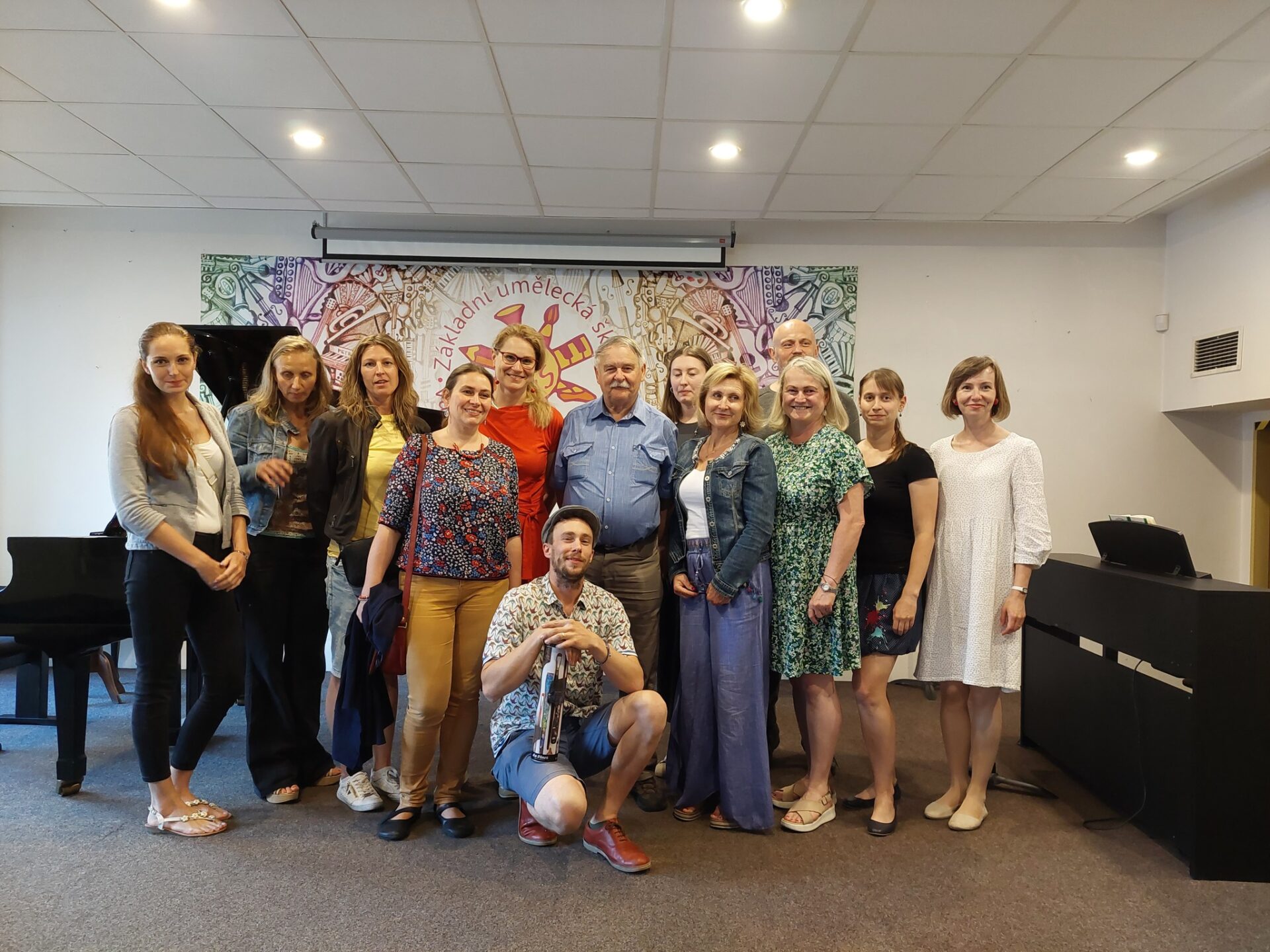 Ve středu 14. 6. 2023 proběhla v sále školy vernisáž výstavy frekventantů kurzů Kresba – malba pro dospělé, které vede Ondřej Vacek. Vernisáž zahájili Šimon Brousil (hra na klavír, N. Stěpaněnko), Týna Potočňák (hra na kytaru, J. Hudec), Andrej Beneš (zpěv), Nikita Stěpaněnko (hra na klavír) a Helena Holubová (klavírní doprovod).