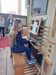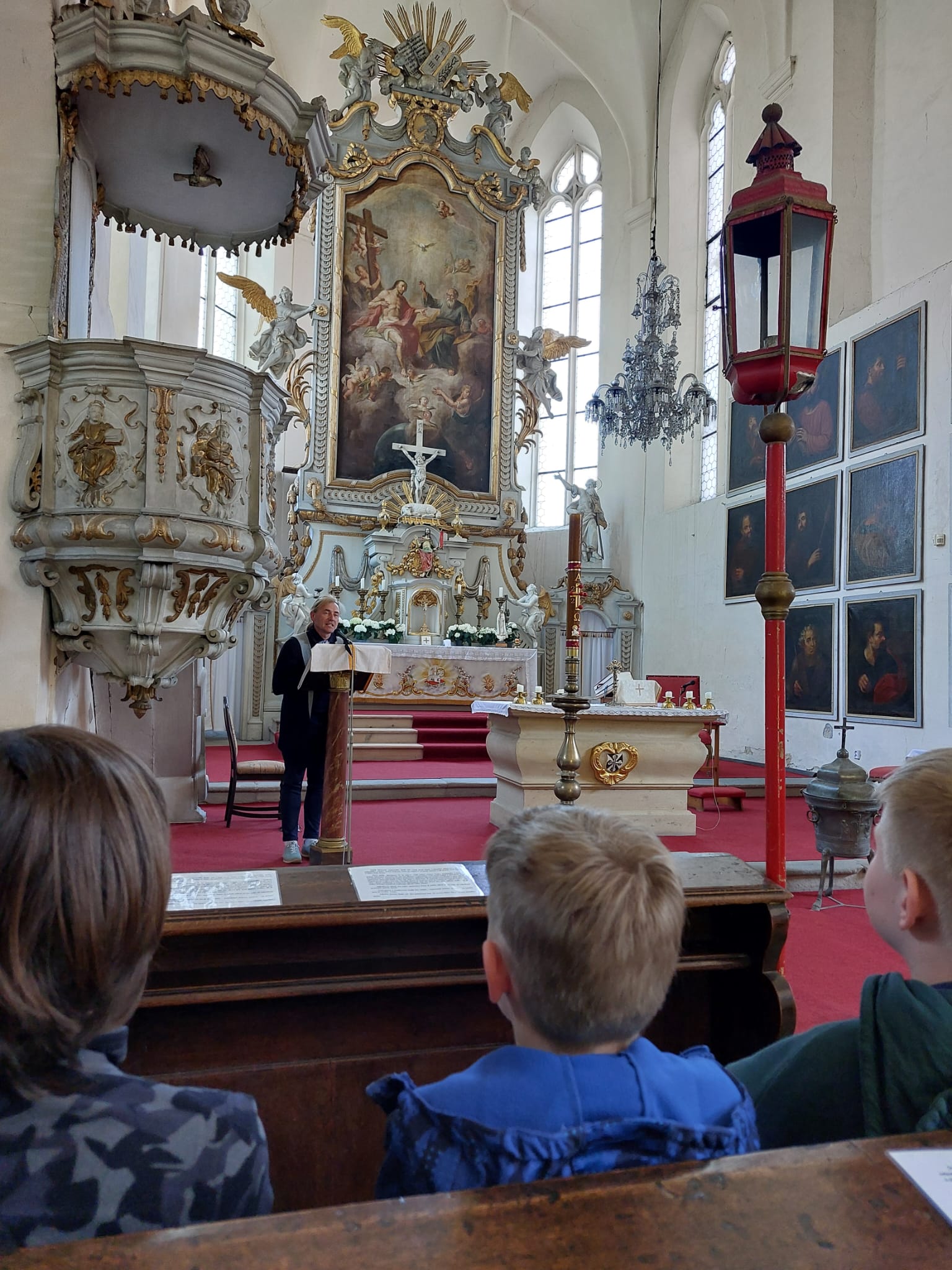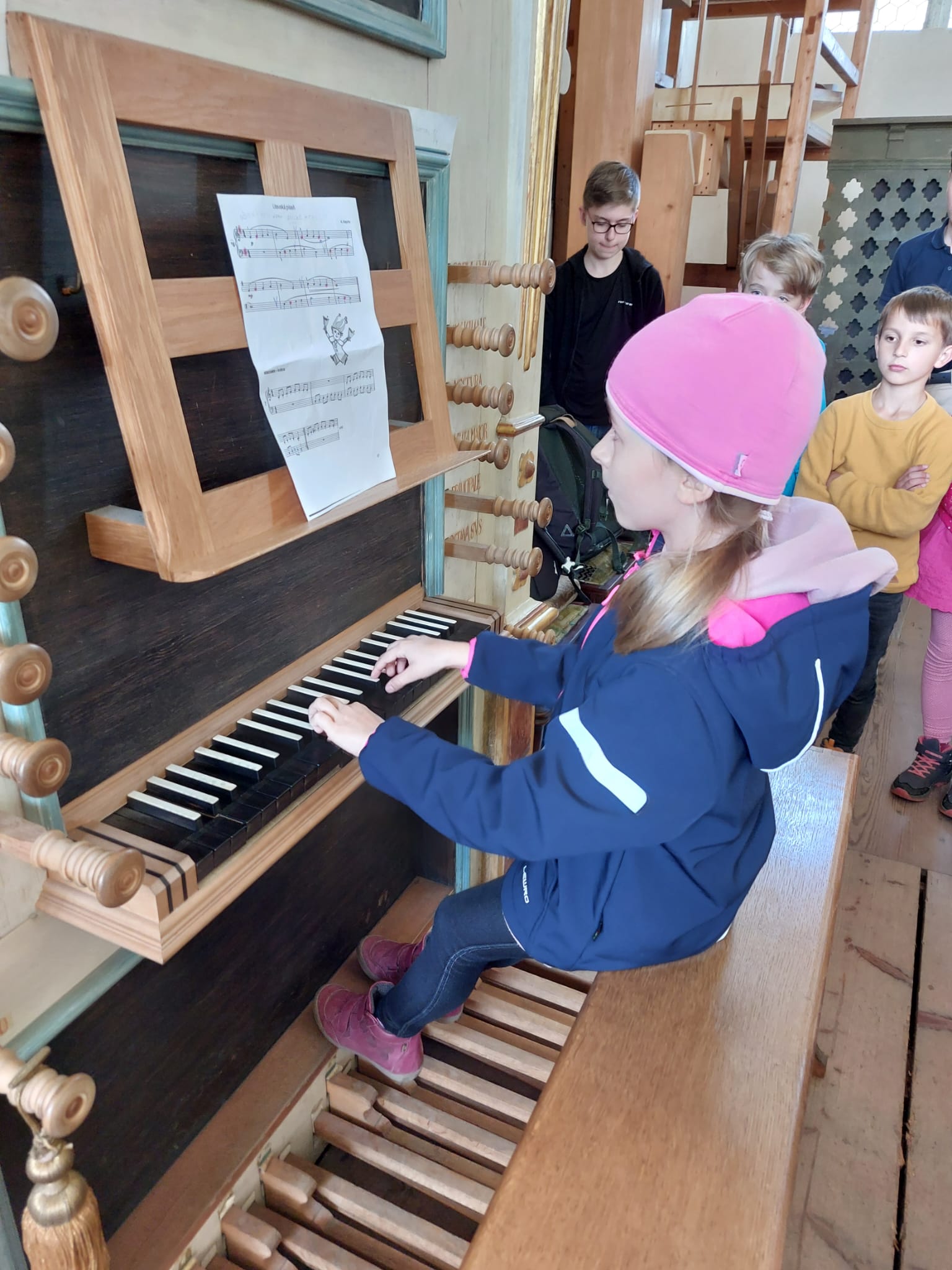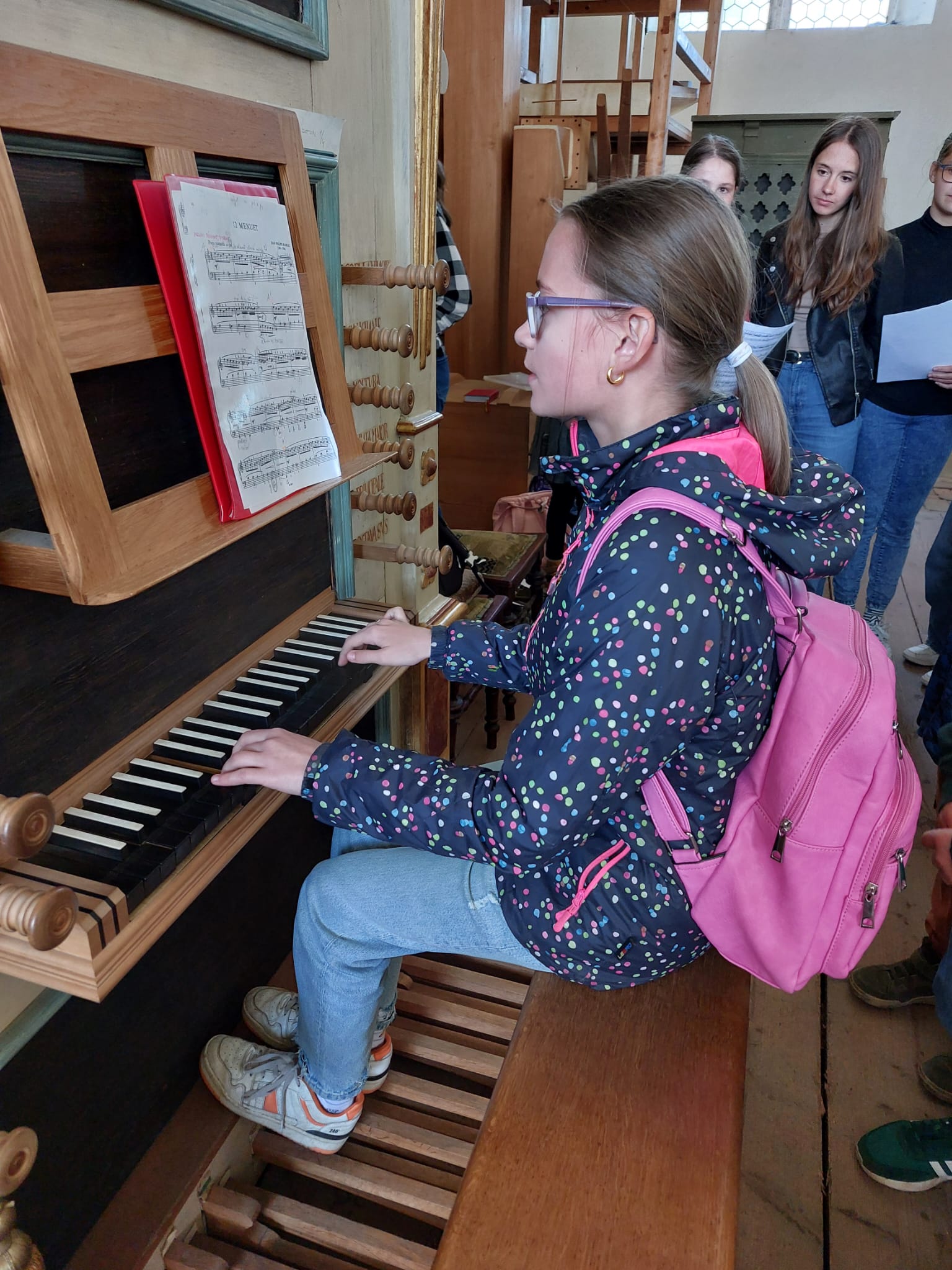 Ve čtvrtek 9. 5. 2024 vyrazili klavíristé ZUŠ V. Talicha Beroun na výlet do Smečna, kde strávili krásné odpoledne v kostele Nejsvětější trojice. Slibovaný poklad je čekal v podobě nejstarší funkční varhany v Česku, na které si žáci mohli i zahrát. Varhany byly vystavěny v roce vysvěcení kostela – v roce 1587. Další zajímavostí je pak středotónové, tedy původní renesanční ladění varhan, které se v dnešní době již nepoužívá.
