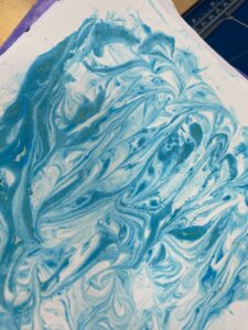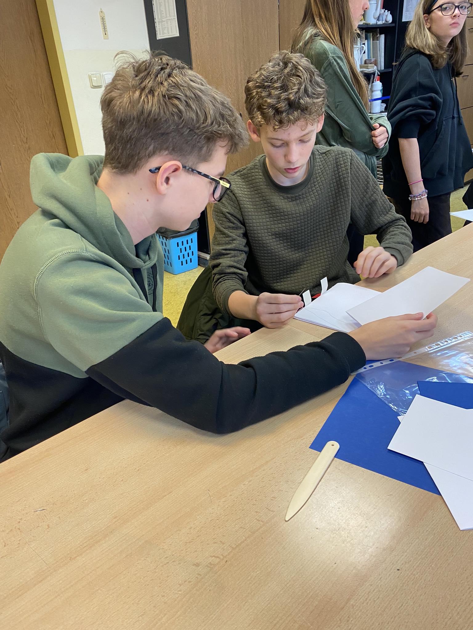 Tandemová knihařská dílna pokračovala šitím knižních sešitů, vytvářením mramorovaných papírů na předsádku a výběrem pláten na potažení obálky knihy. -AB-
