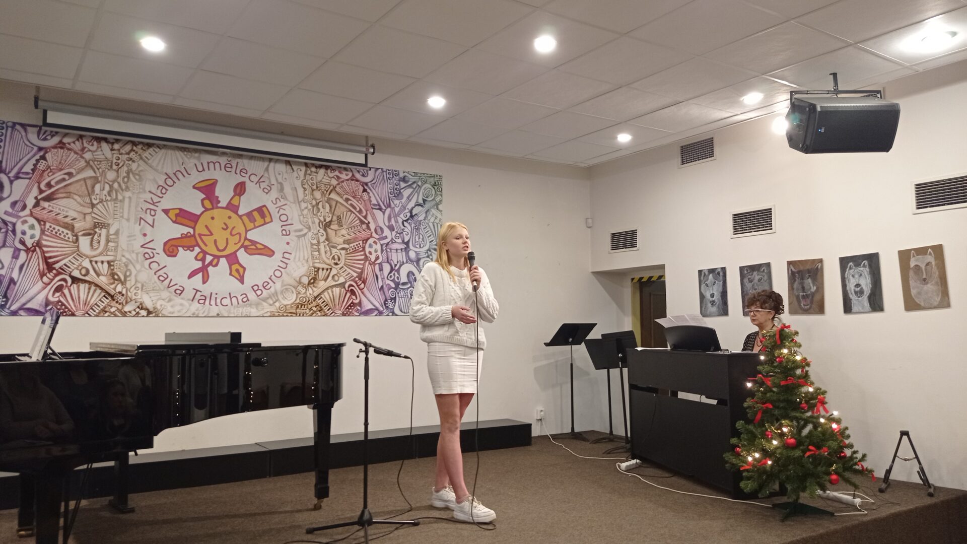 V pátek 9. 12. 2022 proběhl v sále školy vánoční koncert pěveckého oddělení. Představili se žáci a žákyně A. Beneše, R. Nachtigallové a M. Sommerové. Klavírní doprovod A. Spilková, N. Stěpaněnko.