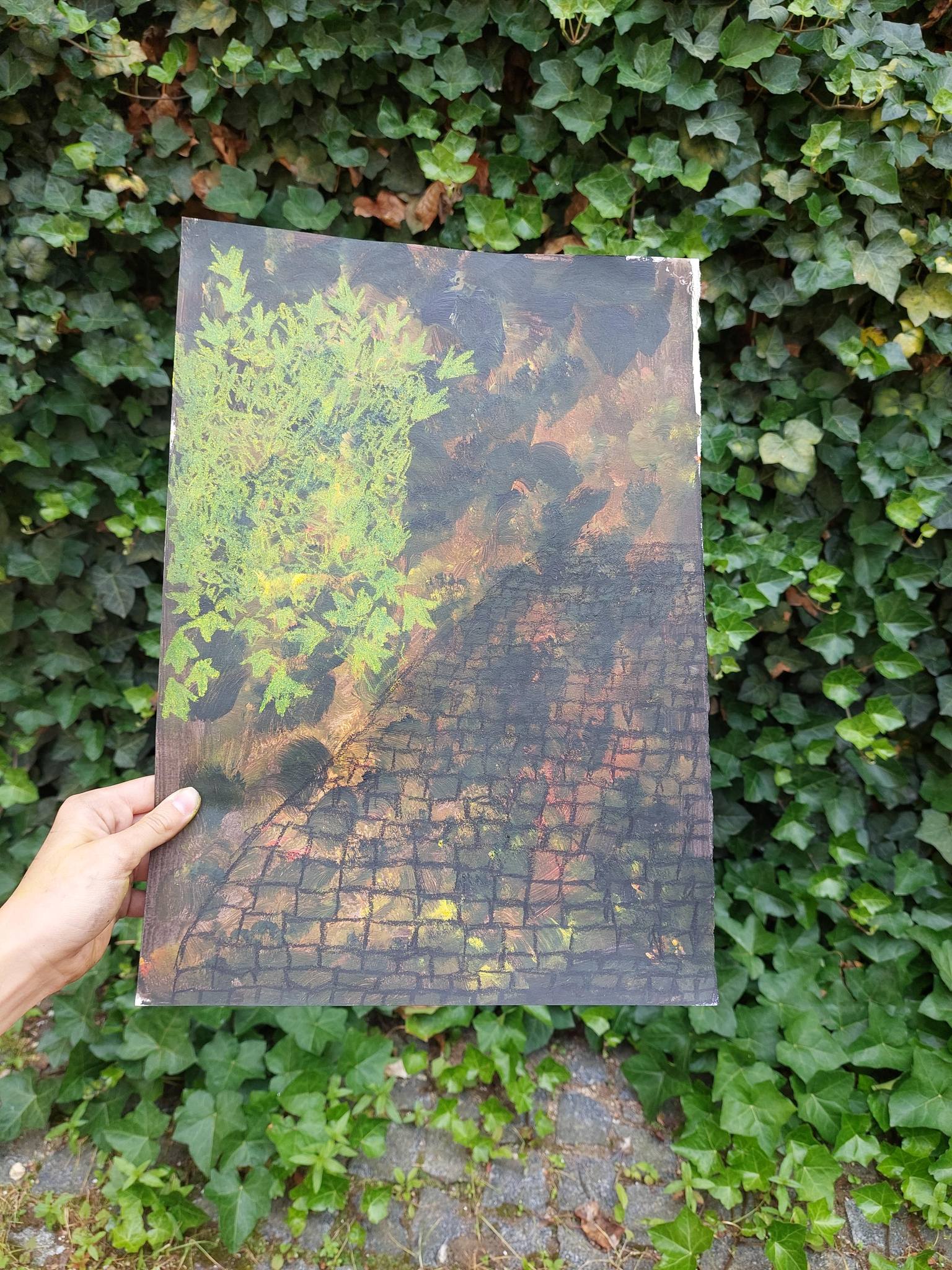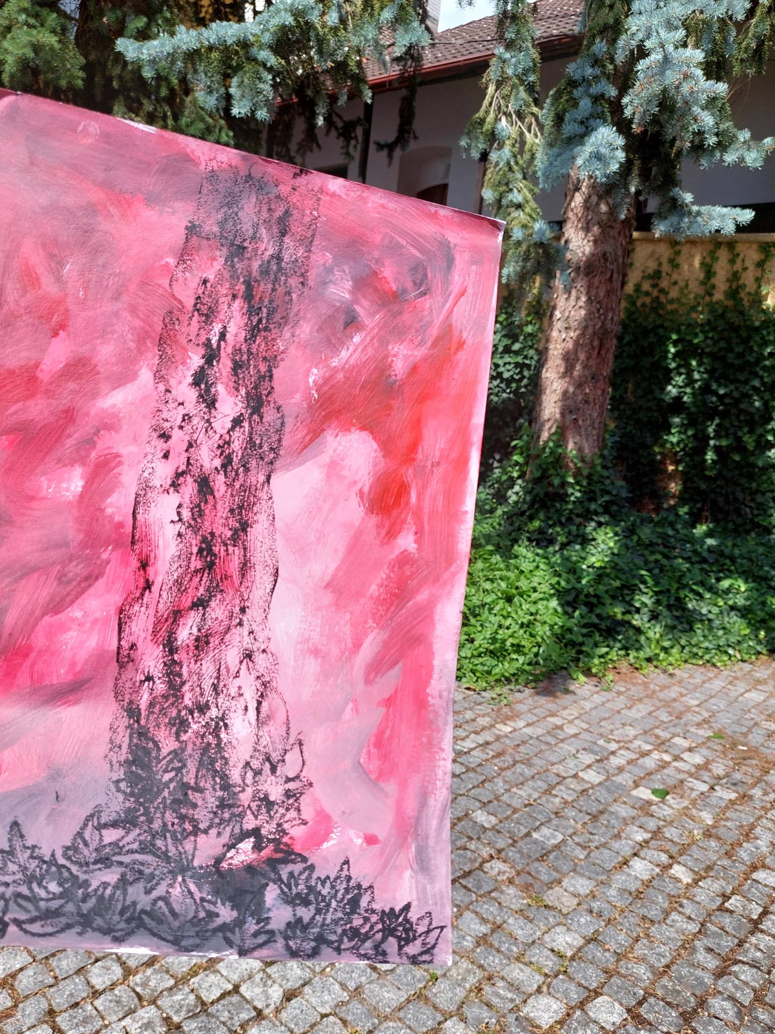 Výtvarka – mladší žáci uč. Andrey Borovské tvoří venku, Inspirace školním atriem. -AB-