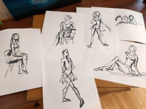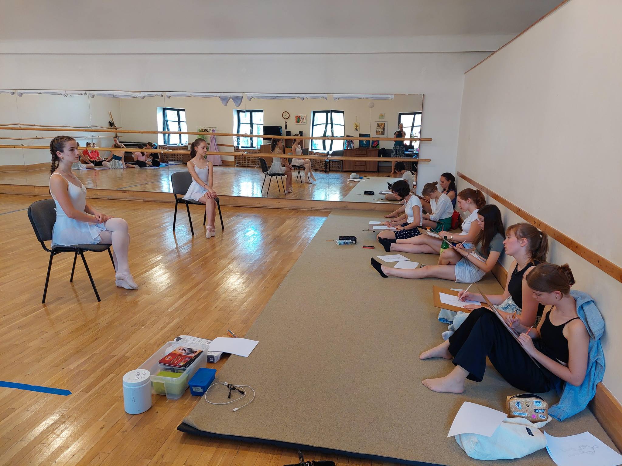 Starší žákyně výtvarky uč. Andrey Borovské na skvělé hodině na tanečním sále. Kresba pohybovek a studie figury podle krásných modelek. Děkujeme uč. Markétě Tomcové za skvělou spolupráci. -AB-