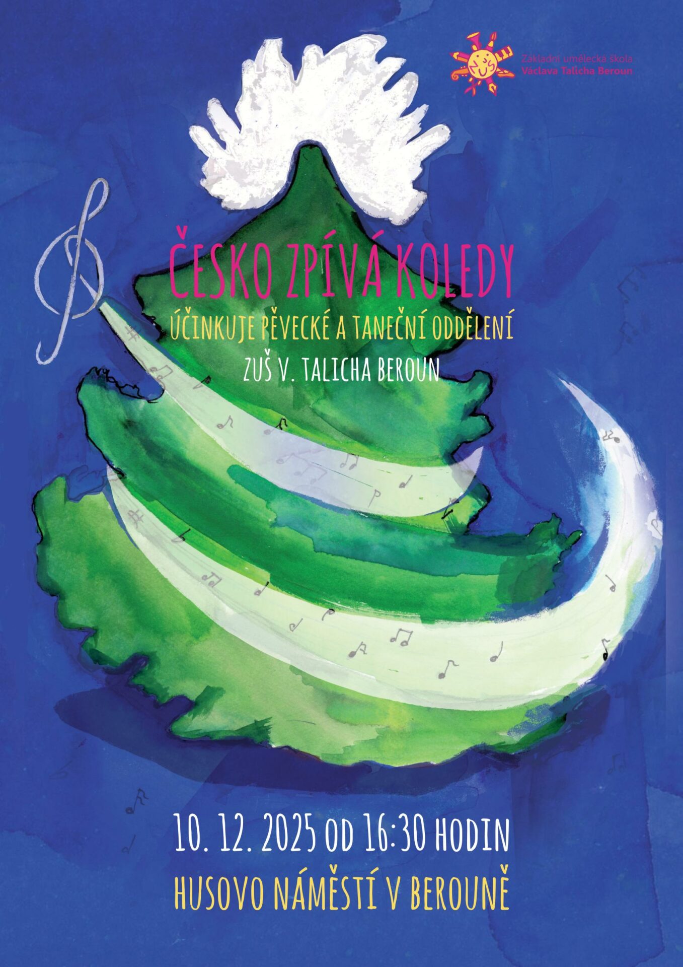 Zveme vás na vystoupení žáků sólového zpěvu a tanečního oboru, které proběhne 10. prosince 2025 od 16.30 hodin na Husově nám. v Berouně.